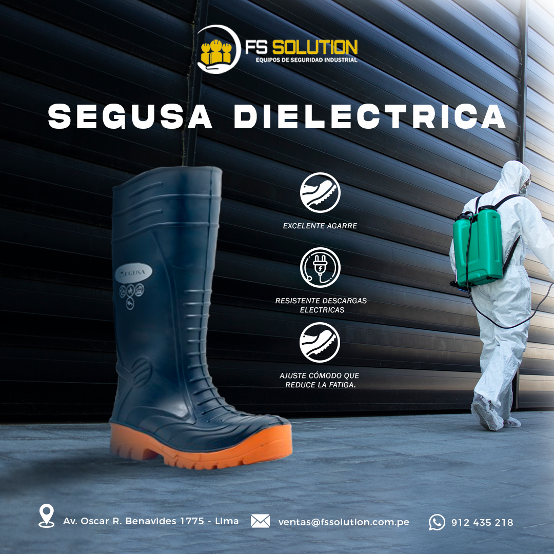 En Fast Stock Solution, ofrecemos la Bota Dieléctrica SEGUSA, especialmente diseñada para proteger al trabajador frente a riesgos eléctricos. Este calzado de seguridad está certificado para trabajos con exposición a electricidad, brindando una barrera efectiva contra descargas eléctricas accidentales.