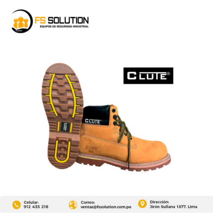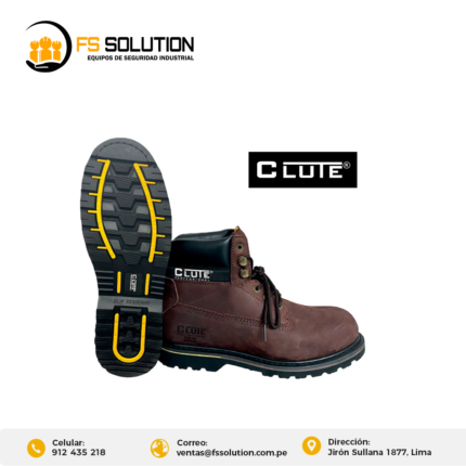 el botín titan de clute cuenta con puntera de acero, suela bidensidad antideslizante y materiales resistentes al desgaste. disponible en colores marrón y mostaza, se adapta tanto a entornos operativos como a uniformes corporativos.